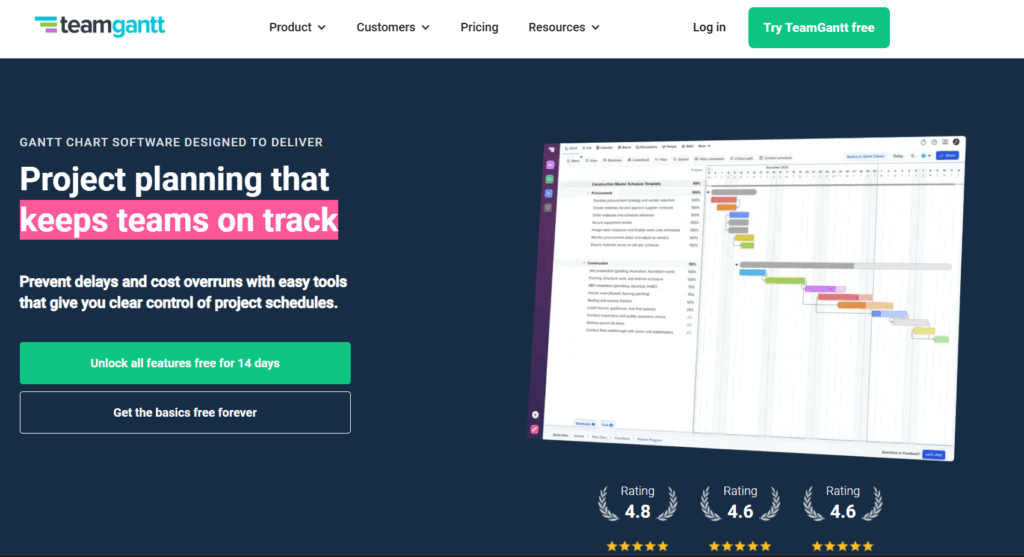As the name suggests, TeamGantt focuses on Gantt charts to plan and track projects. It’s designed for teams that think in timelines and milestones rather than task lists.
